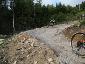 Der Schwarzwaldtrail ist so ausgelegt, dass eine Befahrung für alle Mountainbiker möglich ist. Etwaige Passagen mit erhöhten Anforderungen an die Fahrtechnik werden so gebaut, dass eine problemlose Umfahrung oder das Abrollen des Hindernisses möglich ist. Darüber hinaus erfolgt eine entsprechende Kennzeichnung der Hindernisse. Grundsätzlich ist für die Benutzung der Strecke ein sicherer Umgang mit dem Mountainbike erforderlich. Der Einstieg ist oberhalb der Haltestelle Grashöhe über einen Forstweg zu erreichen. Von dort aus geht es mitten durch den Wald mit mittlerem Gefälle in Richtung Brigittenschloss. Unterhalb vom Brigittenschloss gibt es dann eine Verbindung auf dem Schotterweg zum Gleitschirmfliegerstartplatz.Nach dem Genuss der genialen Aussicht, die sich von diesem Punkt erschließt, schlängelt sich der Trail über die freie Fläche und taucht dann, nach einem weiteren kurzen Stück Forstweg wieder in den Wald ein. Viele Kurven später landet man dann direkt am Hotel-Restaurant Spinnerhof. Die Strecke ist gekennzeichnet durch abrollbare Hindernisse wie Wellen, Tables, Anlieger und kleine Absätze. Ziel ist es ein möglichst flüssiges Befahren ohne größeren fahrtechnischen Anspruch zu ermöglichen und dennoch den „Profis“ durch Sprungmöglichkeiten und speziellen Linien Spaß zu bieten. In einigen Streckenteilen werden Northshores integriert, wenn es durch das Gelände erforderlich wird.
