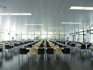 Täglich ein feel fit Gericht zur ausgewogenen Ernährung sowie vier weitere warme Hauptgerichte (davon ein vegetarisches) mit korrespondierenden Beilagen und der Ergänzungsmöglichkeit von Tagessuppe und vielfältigen Desserts. Des weiteren Salattheke, Obstangebot und Aktionen nach Jahreszeit, 2x pro Woche vegane Küche.