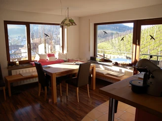 Das Dorf ist in wenigen Minuten erreicht, das Wanderwegnetz liegt direkt vor der Haustür. Mit ein paar Minuten Aufstieg zum Kirchberg-Kreuz hinterm Haus liegt auch die Rheinebene im Blick und nach einem Spaziergang durch die Weinberge zum “Plauelrainer Köpfl” grüßt von Westen (meist!) die schwarze Nadel des Straßburger Münsters, je nach Wetterlage mit den Vogesen als Hintergrund. Nach einer guten halben Stunde Höhenweg –immer am Waldrand lang- lockt auch ein Glas Wein auf der Terrasse von Schloß Staufenberg mit ihrem einmaligen Panorama. Die Ferienwohnung mit 2 Schlafräumen (je 2 Einzelbetten) und dem großen Wohnraum mit offener Küche ist ein idealer und zentraler Ausgangs- und Ruhepunkt für Urlaubstage im Rebland mit Ausflugsmöglichkeiten in Elsaß und Schwarzwald.