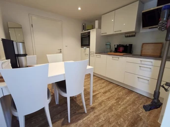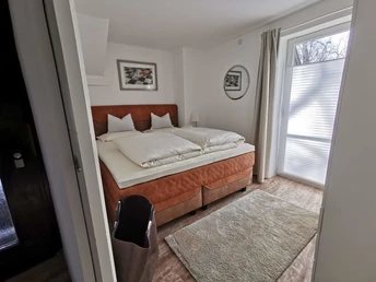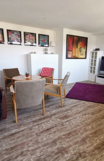 Es handelt sich um eine abgeschlossene Wohnung (ca 50 qm) mit eigenem Zugang. 4 Personen können sich ein hochwertiges Boxspringbett im Schlafzimmer und eine Bettcouch im Wohnbereich teilen. Das Badezimmer ist mit einer ebenerdigen Dusche und einem Dusch-WC ausgestattet. In der Küche befinden sich u.a. ein Sodastream und eine Nespressomaschine. Waschmaschine und Trockner stehen bei Bedarf zur Verfügung. Nach Bedarf und Absprache kann auch Frühstück gestellt werden.
