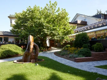 Die Natur in vollen Zügen genießen! Leise rauscht der Wind in den Bäumen, ein Kuckuck ruft und durch die klare Luft weht der Duft eines soeben auf der Sonnenterrasse servierten Kaffees...Sie spielen gerade in Gedanken Ihre Runde auf dem nahe gelegenen Golfplatz durch und freuen sich auf einen anregenden Abend bei einem hervorragenden Menü mit erlesenen Weinen. Nach einem erholsamen Schlaf können Sie zwischen einem Spaziergang im hoteleigenen Waldpark oder dem Besuch im Hallenbad wählen und dann gemütlich frühstücken.