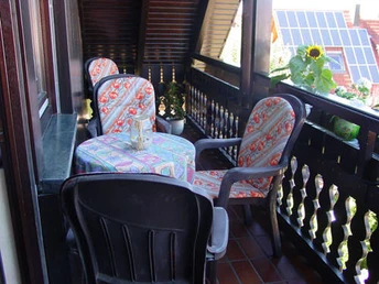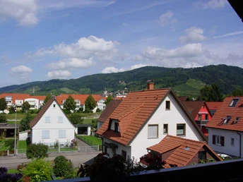 Genießen Sie nach Ihren Ausflügen, auf dem Balkon unserer Ferienwohnung sitzend, den Blick auf die Rebhänge und das Wahrzeichen Oberkirchs - die Schauenburg.