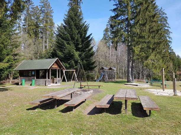 Schöner Grillplatz am Waldrand bei Frutenhof mit kleinem Spielplatz und Ausblick über die Wiesen und Felder.
