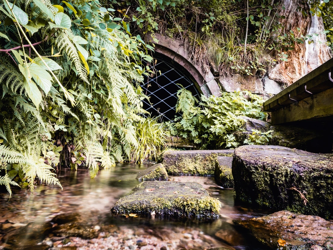 Die Klosterquelle wird über einen Holzsteg erreicht.
