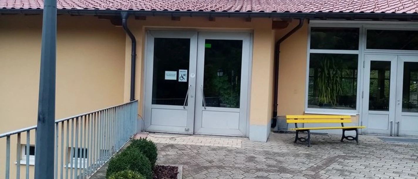 Den Eingang finden Sie über die Terrasse des Kulturhauses.