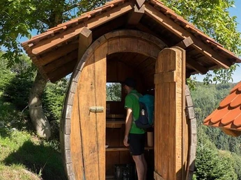 An diesem Rastplatz steht eine Rasthütte und ein uriges Getränkefass, die von Familie Halter errichtet wurden. In der kleinen Hütte befindet sich eine Sitzgruppe mit Bank und Tisch, wo sie Ihr Vesper genießen können. Weiterhin dürfen Sie sich auch gerne im Getränkefass an einer genussvollen Getränkeauswahl gegen Entgelt bedienen.