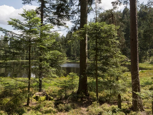 Von der 960 m hoch gelegenen Schurmseehöhe hat man einen guten Blick über den ganzen See, der auf einem Wanderweg umrundet werden kann.