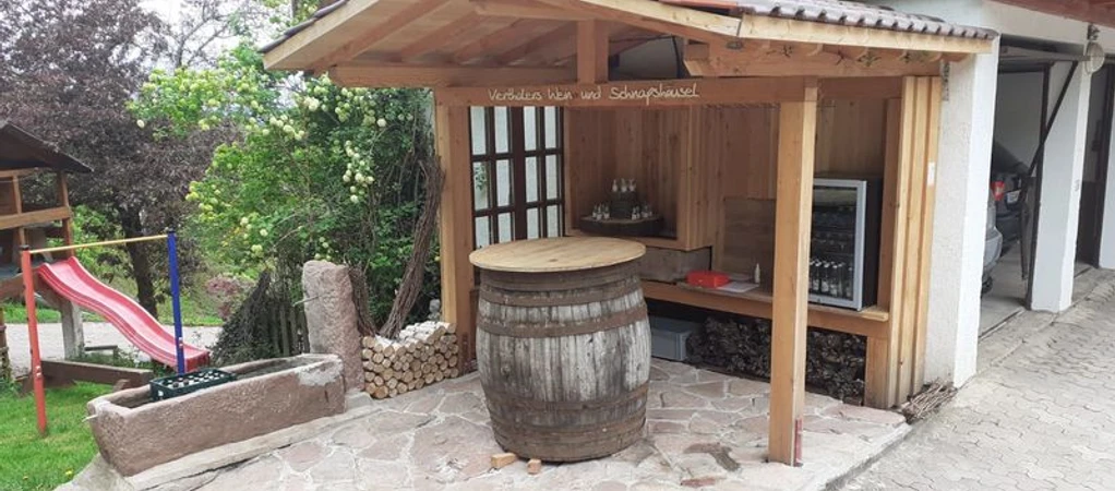 SitzplätzeZahlreiche Sitzgelegenheiten rund um den Hof. Größeren Wandergruppen stellen wir auf Anfrage seperate Sitzgelegenheiten in den Reben zur Verfügung.
