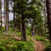 Der Trailrun in Hinterlangenbach ist ein echtes Highlight für Sportler und begeisterte Läufer! Trotz der etwas abgelegenen Lage in Hinterlangenbach kommt hier jeder auf seine Kosten. Die Tour startet am Forsthaus Auerhahn 4* in Hinterlangenbach. Von dort geht es direkt durch den Wald, über einen zunächst breiteren Weg und dann auf naturbelassenen Pfaden, nach oben zum Wildsee. Nach dieser ersten Etappe geht es steil über Bäume und Steine hinweg bergauf zur Darmstätter Hütte. Der Weg ist nun geschottert und breit, jedoch die Aussicht, welche sich Richtung Seibelseckle bietet, macht das Laufen zum echten Genuss. Die Sporttreibenden blicken während des Laufens auf die Rheinebene bis nach Frankreich. Am Skilift Seibelseckle angekommen führt der Weg geradeaus weiter in Richtung Hinterlangenbach. Ab jetzt geht es nur noch bergab. Ein Schotterweg geht in einen spannenden Pfad durch den Wald über und endet am Startpunkt beim Forsthaus Auerhahn 4*.