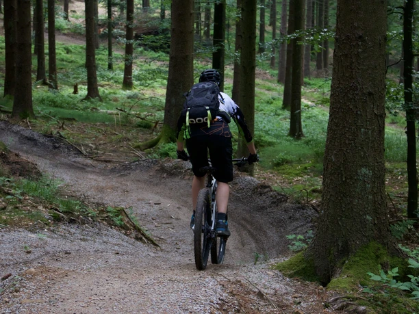 Der Schwarzwaldtrail ist so ausgelegt, dass eine Befahrung für alle Mountainbiker möglich ist. Etwaige Passagen mit erhöhten Anforderungen an die Fahrtechnik werden so gebaut, dass eine problemlose Umfahrung oder das Abrollen des Hindernisses möglich ist. Darüber hinaus erfolgt eine entsprechende Kennzeichnung der Hindernisse. Grundsätzlich ist für die Benutzung der Strecke ein sicherer Umgang mit dem Mountainbike erforderlich. Der Einstieg ist oberhalb der Haltestelle Grashöhe über einen Forstweg zu erreichen. Von dort aus geht es mitten durch den Wald mit mittlerem Gefälle in Richtung Brigittenschloss. Unterhalb vom Brigittenschloss gibt es dann eine Verbindung auf dem Schotterweg zum Gleitschirmfliegerstartplatz.Nach dem Genuss der genialen Aussicht, die sich von diesem Punkt erschließt, schlängelt sich der Trail über die freie Fläche und taucht dann, nach einem weiteren kurzen Stück Forstweg wieder in den Wald ein. Viele Kurven später landet man dann direkt am Hotel-Restaurant Spinnerhof. Die Strecke ist gekennzeichnet durch abrollbare Hindernisse wie Wellen, Tables, Anlieger und kleine Absätze. Ziel ist es ein möglichst flüssiges Befahren ohne größeren fahrtechnischen Anspruch zu ermöglichen und dennoch den „Profis“ durch Sprungmöglichkeiten und speziellen Linien Spaß zu bieten. In einigen Streckenteilen werden Northshores integriert, wenn es durch das Gelände erforderlich wird.