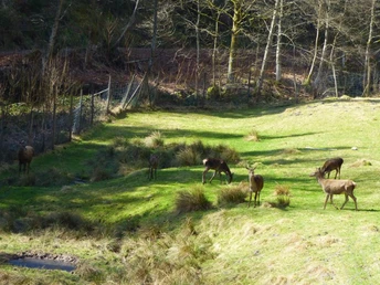 Jetzt verlassen wir den Seensteig und wandern geradeaus weiter bergab (gelbe Raute) auf dem Fußpfad Richtung Hinterer Langenbach. Am Forstweg angekommen, halten wir uns links und wandern am Wälzbach entlang weiter talabwärts (vorbei am Wegweiser Wälzbachweg bis zum Wegweiser Wälzbach. Nun führt uns unser Weg nach rechts über die Wälzbachbrücke und gleich darauf über die Langenbachbrücke bis zum Wegweiser Ortsmitte. Das Hotel Forsthaus Auerhahn sehen Sie jetzt direkt oberhalb. Sie können nun entweder den steileren Fußweg, welcher rechterhand nach oben führt, wählen oder aber auf der Straße nach links bis zum Wegweiser Ehem. Wanderheim gehen und dann wieder nach rechts in Richtung Auerhahn wandern.