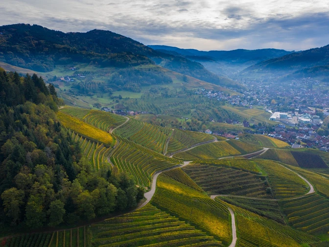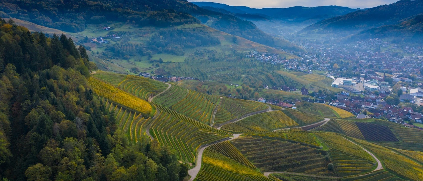 Ein kurzes Stück Kastanienwald bringt den Walker zu den Rebterrassen des bekannten Weines Hex vom Dasenstein. Mit stetigem Blick auf das Rotweindorf führt der Weg entlang des Langenbergs, dann stetig bergan über Iberg zum Ottenberg. Ehe es talabwärts über den Simmehof (mit Rastmöglichkeit) zurück zum Ausgangspunkt am Schützenhaus geht.