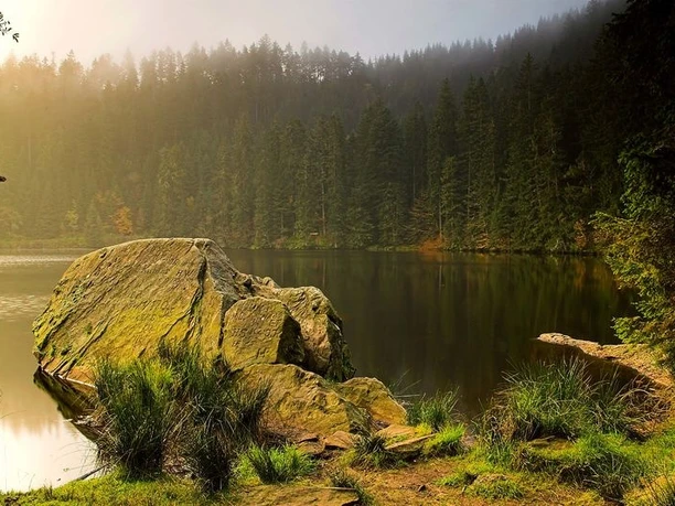 Herrliche Ausblick in die Rheinebene und in das Renchtal begleiten uns auf dieser Wanderung. Der Weg wird zusehends schmaler und führt dann auf naturbelassenem Grund bis zum Seeblick. Bereits hier oben sehen wir die Schönheit dieses Karsees. Wir steigen die Karwand hinab und kommen zum Glaswaldsee. Nach einem ersten Anstieg zur Grünen Sitzbank werden wir mit dem Blick ins Wolftal belohnt. Nach unserem Abstieg müssen wir am Schluss noch einmal den steilen Anstieg auf den Kniebis in Angriff nehmen. Entlang des Eichelbachs geht es ständig aufwärts.