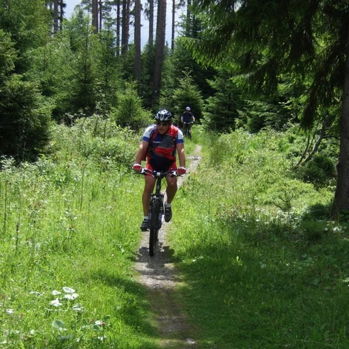 Ca. 500m weiter geht es links und am nächsten Abzweig (Km 12,1) halbrechts in den Waldweg. Nach 200m rechts ab auf einen steilen Bergabtrail (LB16) bis zur Einmündung (Vorsicht!) auf den hangparallelen Forstweg. Dort rechts dem Forstweg ca. 800m folgen. An der Forstwegkreuzung (OK32) dem Forstweg bergab ca. 1,2Km zur Münsterplatzhütte (Km 14,8) folgen. Weiter bergab dem Katzensteig am MTB Abzweig OK 33 vorbei folgen. Bei Km 16 zweigt die MTB Route nach links ab, an den Weinreben entlang bis zur Hütte. Dort geht es rechts bergab zur Straße. Auf dieser weiter nach links zum Krankenhaus. Über die Gaisbacher Straße am Leimenbrunnen vorbei geht es zurück zum Ausgangspunkt.
