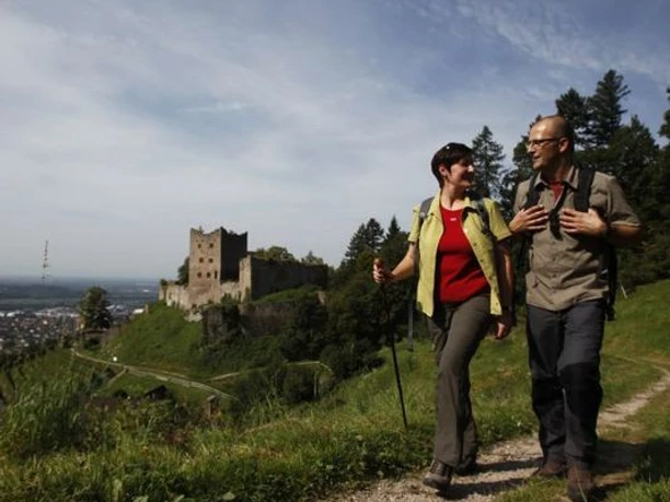 Diese Wanderung führt zuerst zur Burgruine Schauenburg. Von den Gemäuern der alten Burg kann man die schöne Aussicht auf Oberkirch und ins Rheintal bis zu den gegenüberliegenden Vogesen genießen. Von hier ab geht die Wanderung über den Kapuzienerbrunnen in den Ortsteil Ringelbach und durch Obstanlagen und Felder wieder zurück nach Oberkirch.