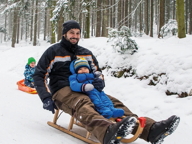 Genießen Sie die Winterzeit mit Ihren Kindern auf der angelegten Rodelbahn am Freiersberg.