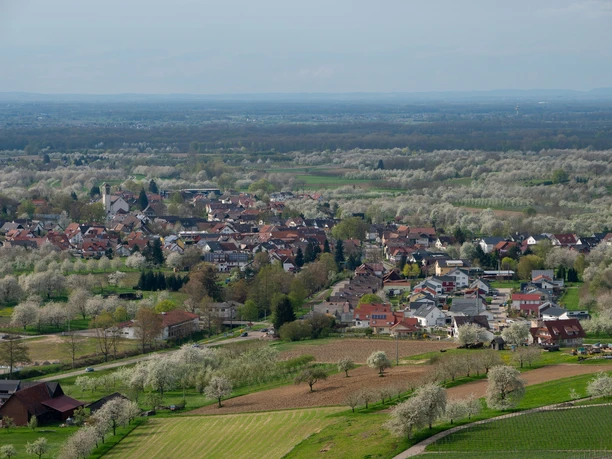 Beim Winzerhof Paul Kiefer verlassen wir die Straße. Entlang der Rebwege ist die erste Steigung zu bewältigen. Sodann erreichen wir den Aussichtspunkt am "Plauelrainer Köpfle". Hier bietet sich ausreichend Gelegenheit, eine kurze Rast einzulegen und das Rundumpanorama zu genießen (Wegabschnitt Ebersweier Rundweg 3).