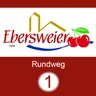 Über einen Verbindungsweg gelangen wir in das Gemeindegebiet "In der Au" (Wegabschnitt Ebersweier Rundweg 1). Im Unterdorf überqueren wir die Kreisstraße nach Windschläg. Vor dem letzten Wohngebäude zweigt ein gut ausgebauter Feldweg ins Breitfeld ab, wiederum umgeben von herrlichen Kirsch- und Obstbaumkulturen (Wegabschnitt Ebersweier Rundweg 1).