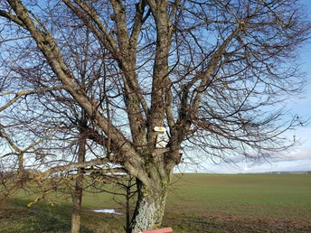Nach ca. 500 Metern erreicht man den Spiel- und Grillplatz unter der Linde. Die Linde markiert zugleich den höchsten Punkt der Spazierrunde und eine Bank um den mächtigen Baum lädt zum Genießen der 360° Aussicht ein.